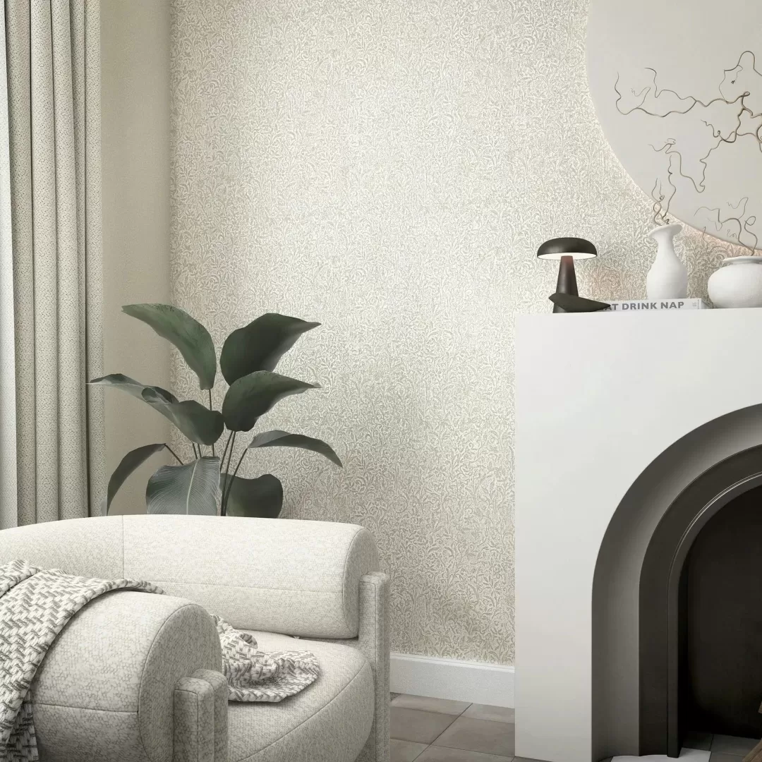 Give your walls a touch of vintage romance: this wallpaper combines a delicate floral relief with elegant gold accents on a patinated background. Ideal for stylish interior design with classical elegance and artistic character.