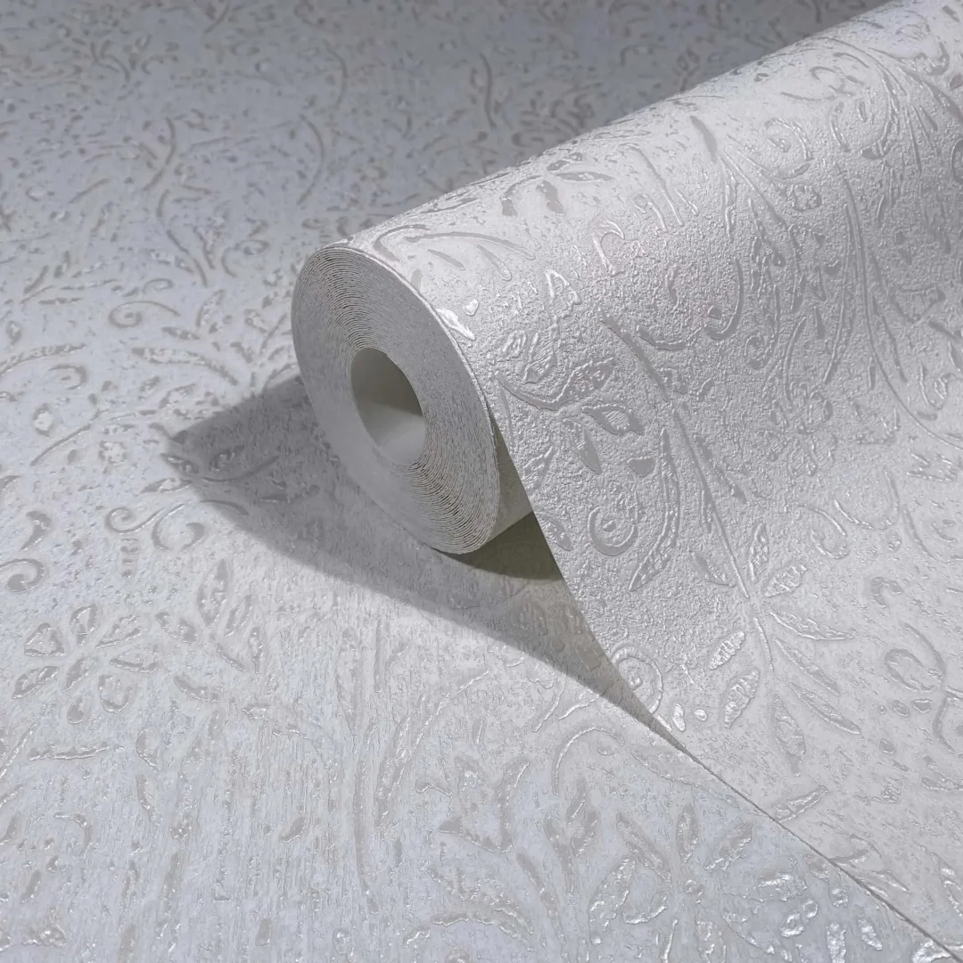 Give your walls a touch of vintage romance: this wallpaper combines a delicate floral relief with elegant gold accents on a patinated background. Ideal for stylish interior design with classical elegance and artistic character.